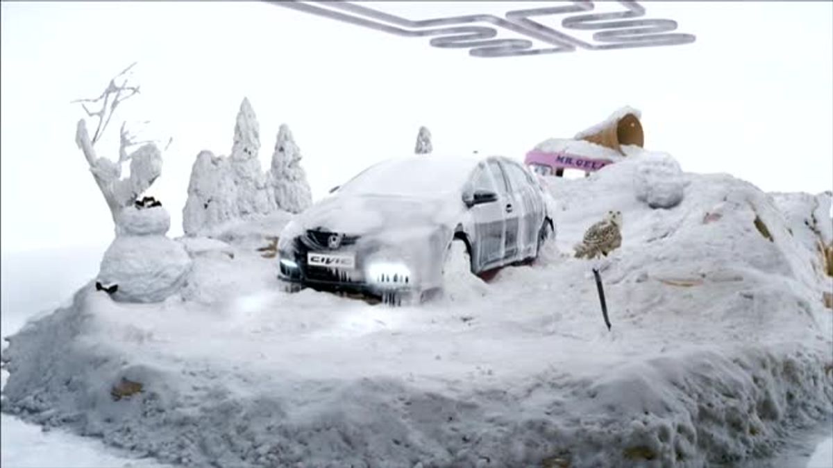 Created by Wieden+Kennedy London for Honda, this cool (no pun intended) spot was made to showcase the extreme temperature tests the car is put through by the manufacturer. Produced by RSA and directed by Johnny Hardstaff, the ad shows the car being subjected to temperatures from -30c to +80c in a highly stylized set.