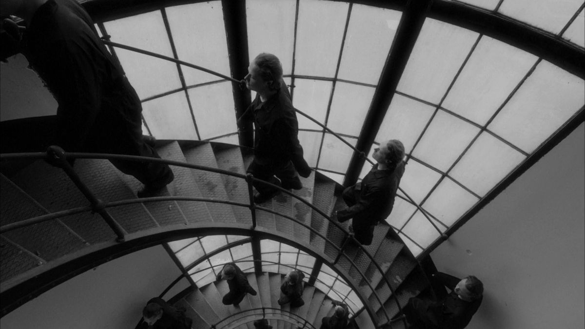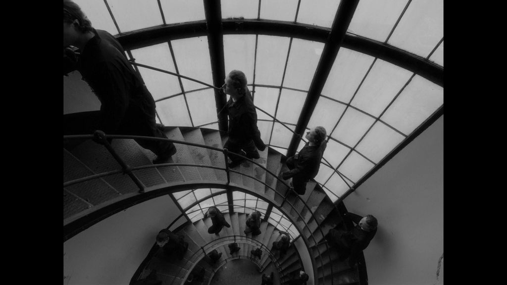 The tightly controlled, Orwellian monotony of his life is disrupted when he discovers a miniature version of himself - an encounter that forces him to question the nature of his reality for a fleeting moment, before the story loops back to the scene where it all started.