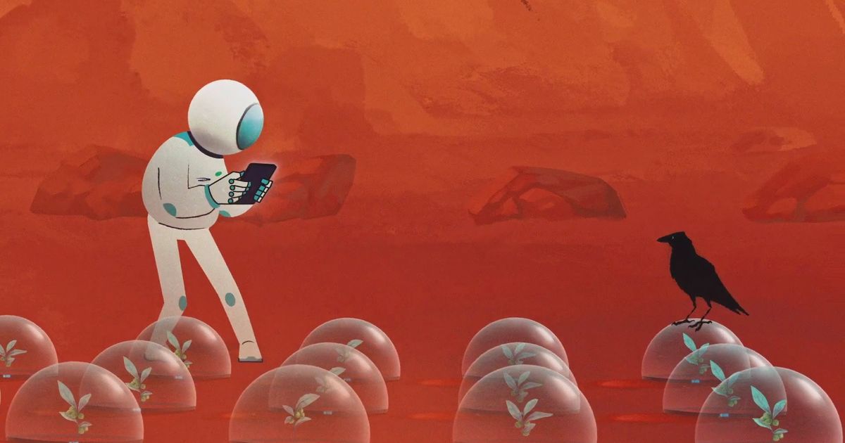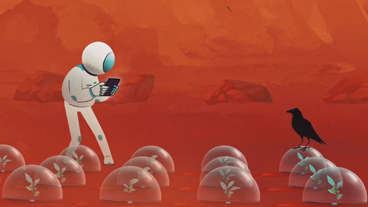 However, our befeathered friends certainly seem to claim ownership of the Red Planet in Blinkink director Jac Clinch's charming animated promo for Police Dog Hogan's new single, Here Comes Crow.