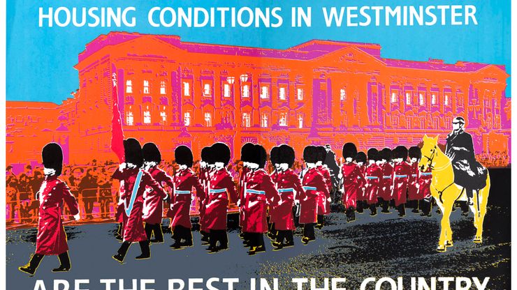 This image started life as a postcard, after Westminster tenants told Phillips that Shirley Porter, the leader of Westminster City Council, was planning to sell housing stock to attract more Conservative voters. The Tories had come within 100 votes of losing Westminster and wanted to protect themselves at the next election.