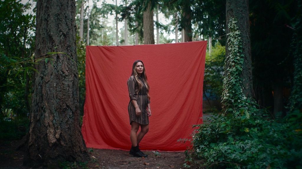 Redcloud’s voice-over is accompanied by images of children smiling in front of a backdrop on a pier, quick cuts of pow wow dancers, cultural signifiers, and landscapes, creating an expansiveness in thirty seconds.