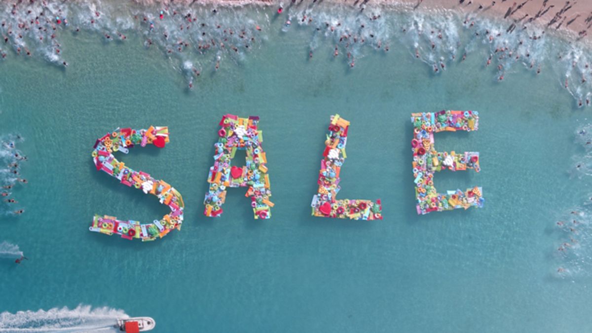 Virgin Holidays newest marketing campaign directed by Jamie Rafn features one hundred people – some of them real Virgin Holidays customers – running down a Barbados beach in dramatic slow motion. An aerial shot from above shows they’re racing for hundreds of floating lilo’s which spell out the word SALE while a voiceover comments: “The Virgin Holidays Sale, it won’t last forever”